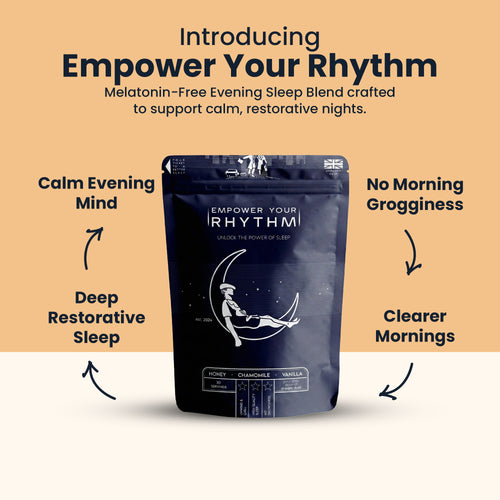 Unlike other sleep-enhancing drink companies, Rhythm understands that quality sleep begins with behaviors and is enhanced with a calming evening blend. Rhythm’s Perfect Evening contains scientifically-backed x, y, and z to improve sleep quality, recovery, and physical and mental energy levels. Contrary to over-the-counter sleep aids and sleep-related drinks, Rhythm does not include melatonin which often leaves the consumer feeling groggy and headache the following morning.